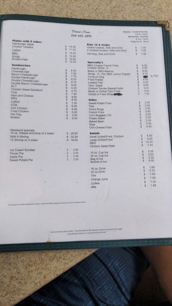 Classic southern diner - great food, inexpensive prices amazing friendly folks!