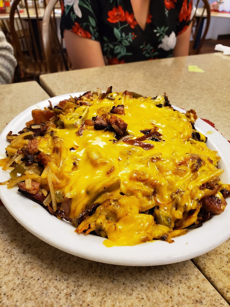 The best service and food! Let me tell you, my sister and I drove many miles to try this particular diner based on the reviews. It wasn't pretty on the outside, but on the inside was a completely different piece! The service was perfect! Friendly, not too much, not too little. Just perfect. Now let's get to the food! Flavorful, seasoned just right, and perfectly cooked. My friends double meat burger was very jucy. Let's get to the portions now. OMG, my sister got lost in her double patty cheeseburger. It took me forever to find her. I finally heard her muffled voice between the double patty meat. Seriously though, it was pretty big. We ordered a side of smothered tots and fried pickles. The portions were huge! Could easily feed two people, could feed four people as well. In fact my sister and I had left over enough for a meal for 3 more people! The burger patty was like handmade or something. Honestly the best service and food I've ever had. A great vibe, like a hometown diner feel. They all seemed to know each other too. I'll definitely go back.